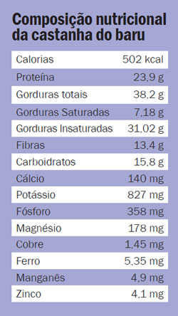 Pois bem, outra semente oleaginosa, típica do cerrado brasileiro e praticamente desconhecida na maior parte do Brasil, vem para reforçar esse time de aliados da saúde. Trata-se da castanha do baru, fruto do baruzeiro (Dipteryx alata) uma planta leguminosa arbórea. Seu sabor é semelhante ao do amendoim e da castanha de caju, porém, é considerado mais prevalecente, como se a castanha tivesse sido um pouquinho mais torrada. É rica em proteínas, fibras, minerais, além dos ácidos graxos oleico (ômega-9) e linoleico (ômega-6). "Ela também é um alimento considerado proteico e energético, pois contém calorias", afirma a nutricionista clínica funcional Fernanda Granja, de São Paulo.
